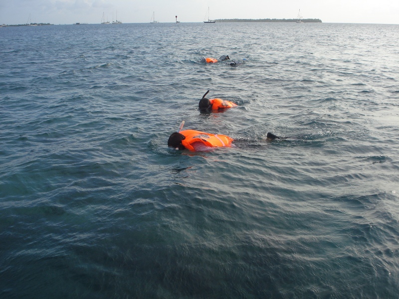 Alhasil mual dan puyeng saya kambuh dengan sukses. Begitu perahu berhenti kami diajak turun untuk snorkling lagi. Saya dilanda keraguan akut. Snorkling ndak ya? iya, tidak, iya, tidak, iya… Hehehe siapa yang berani nolak jika di sekeliling kita hamparan laut yang sangat mengoda. Dengan tekad bulat saya menceburkan diri. Olala arusnya cukup deras.