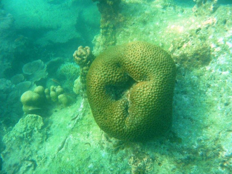 Sambil mengobrol ini dan itu, akhirnya kami sampai juga di spot snorkeling pertama, Karang Kapal. Wadooh, kenapa tiba-tiba saya berasa mabok laut yak? Hiks padahal hamparan laut dengan airnya yang hijau tosca dan biru jernih itu terbentang di hadapan saya. Aaah whatever deh, buang rasa eneg itu, mari terjuuuuun! wkwkwk