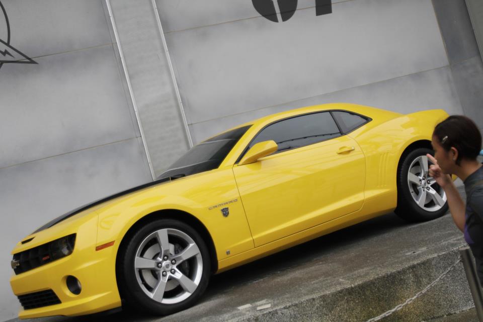 Sesuai dengan tujuan awal, yakni ke wahana Transformers The Ride, saya langsung bergegas ke sana. Sempat foto-foto di beberapa themed zone, seperti Hollywood dan New York. Tapi, tak lama. Sampai di Transformers The Ride yang masuk zona Sci-Fi City, aku menjumpai Camaro a.k.a Bumblebee. Saya langsung ngiler! ha ha ha.. Keren banget tuh mobil.