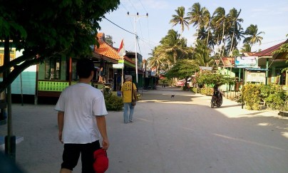 Begitu urusan pipis beres, ada satu urusan lagi yang harus dipenuhi. Apa lagi jika bukan soal makan. TO baru menyediakan makan malam. Tak mungkin saya menunggu lebih lama lagi. Setelah pembagian kunci kamar, saya mulai menyusuri perkampungan dengan dua rekan satu rombongan yang kamar penginapannya bersebelahan dengan kamarku, Bang Andy dan Bang Derryl. Meski masih bulan Ramadhan, banyak warung makan yang buka. Kami memutuskan makan di sebuah warung yang agak ramai. Pesanan saya; nasi goreng+telur dadar dengan segelas teh panas. Tak begitu nikmat rasanya, tapi berhubung lapar, ya dinikmati saja. Total kerusakan; Rp25 ribu. Mahaaal.
