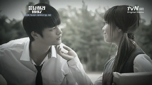 Hal itu sudah jadi keunggulan serial ini di mata saya. Tapi, tunggu dulu. Masih seabreg keasyikan lain. Dimulai dari alur. Answer Me, 1997 memakai alur cerita yang agak tak biasa. Tak hanya meloncat ke masa lalu-masa kini, tapi loncatan itu sungguh tak beraturan. Tak hanya dalam hitungan jam, bisa saja saat ini kita dibawa kembali ke jaman tahun 1998, tiba-tiba langsung ke 2012. Dari 2013 ke 2012, ke 1997, 1997 ke 2012…