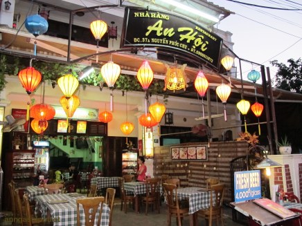 Resto, cafe, warung makan, apa pun sebutannya itu, juga buka pada siang hari. Namun, suasana malam hari Hoi An tak sama seperti yang terlihat saat siang hari. Hoi An di malam hari penuh dengan cahaya lentera. Hampir di setiap sudut Kota Tua; warung makan, toko, penginapan, dihiasi dengan lampion.