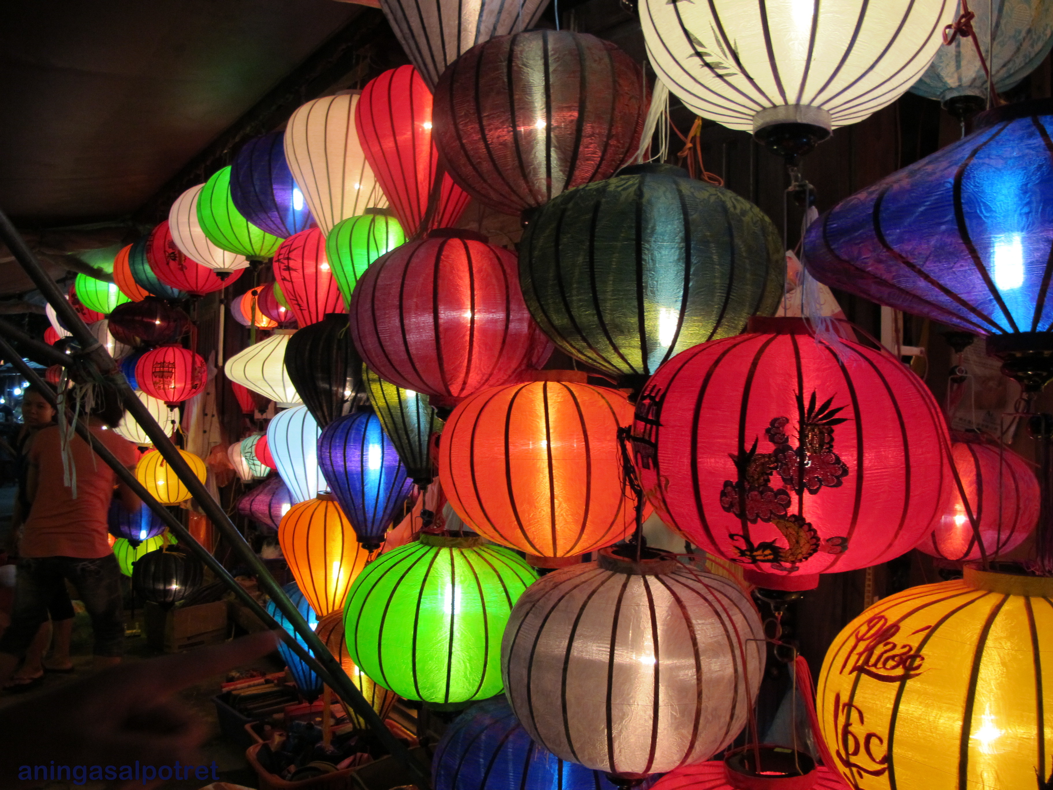 Toko-toko yang menjajakan cenderamata khas tampak berbeda dari siang hari. Jangan lupa kunjungi pula Pasar Malam. Di sana kita bisa mendapatkan pernik-pernik untuk suvenir dengan harga lebih miring. Ada pula deretan toko yang menjual lentera beraneka ragam. Bagi pencinta fotografi, deretan toko lampion ini pasti akan jadi objek menarik. Anda bisa pula menyaksikan kesenian tradisional yang dimainkan di beberapa lokasi. Saya sempat ikut melihat. Meski tak mudeng, oke-oke saja larut dalam kerumunan penonton 🙂