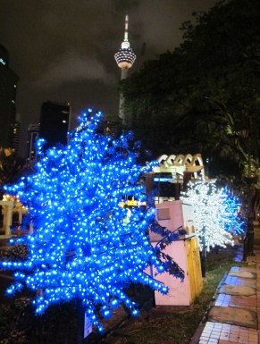 Sampai di kawasan depan Petronas kami disambut hujan rintik-rintik. Badan yang sudah basah keringat semakin lengket bercampur air hujan. Serunya lagi, setelah mengambil beberapa foto berlatar belakang Petronas, kami kembali berjalan kaki lagi ke Bukit Bintang. Kali ini, bisa jadi rutenya memutar dan justru tambah jauh dari saat kami berangkat.