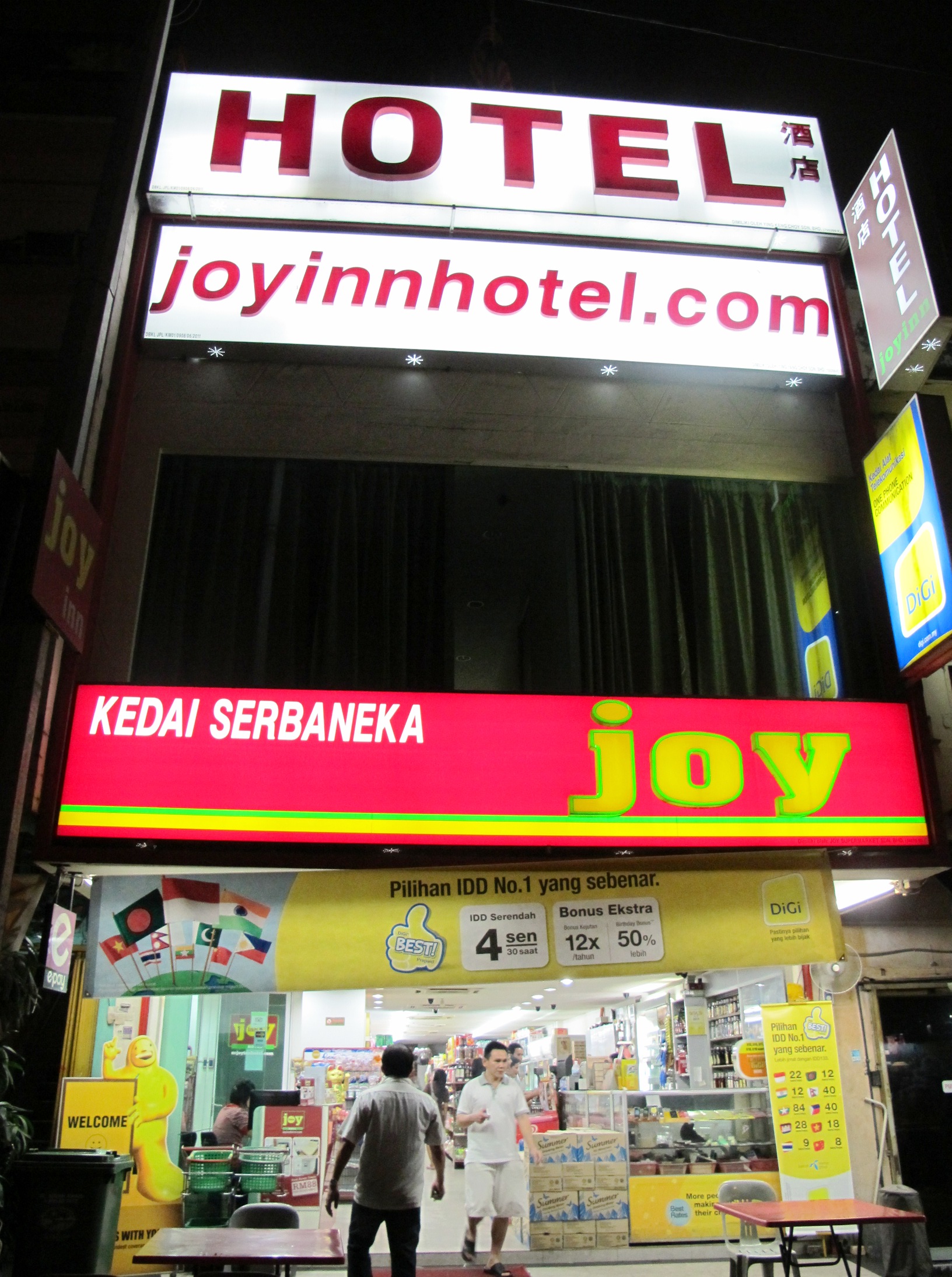 Maka, Yus Mei, Akbar, dan Krisna mencoba berkeliling mencari penginapan lain. Saya dan Bapak menunggu sambil terkantuk-kantuk di depan penginapan pertama. Mereka bertiga datang dan membawa kabar baik jika sudah deal dengan penginapan yang letaknya di daerah belakang penginapan pertama. Kami mendapat kamar di lantai atas Joy Inn Hotel. Semua kamar memang terletak di lantai atas karena lantai dasar digunakan sebagai mini market. Kondisi kamar basic. Ya, cukuplah untuk beristirahat 2-3 jam sebelum ke LCCT untuk flight kembali ke Tanah Air.