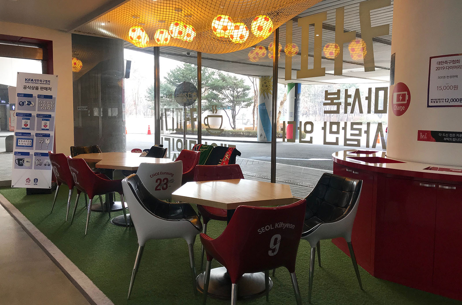 Meski terbilang tak luas, Football Faentasium dilengkapi fanstore, di mana pengunjung bisa membeli pernik-pernik Timnas Korsel serta ada pula kafe mungil dengan detail yang tak luput dari hal berbau Piala Dunia 2002.